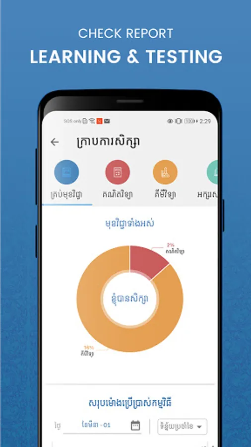 - Video teaching contents: learning videos taught by many professionally experienced teachers in Cambodia.