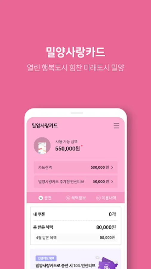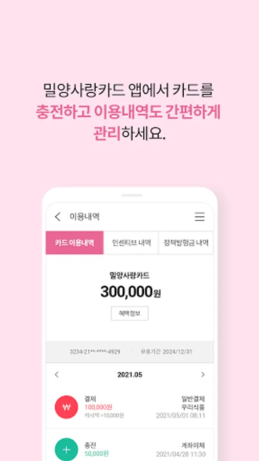 - Card usage history can be easily checked in the Miryang Love Card app.