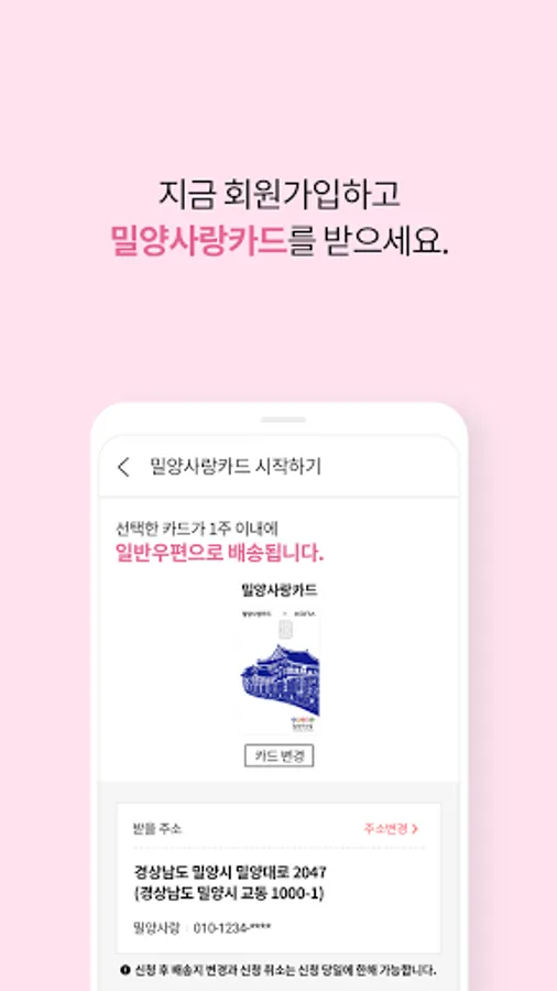 - You can apply for a card right from the Miryang Love Card app, without complicated account opening or bank visits.