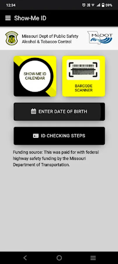 The Missouri Department of Public Safety Division of Alcohol and Tobacco Control provides this supplemental app to help aid with alcohol and tobacco sales compliance. The app includes built-in scanning functionality using the camera feature on the device so that you can quickly determine age and validity of an ID. This app is not a replacement for reasonable and necessary steps that may be needed to determine the age or identity of a person.
