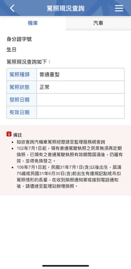 Due to system architecture factors, some functions are temporarily not available to foreigners and legal persons. If necessary, please check the supervision service website: https://www.mvdis.gov.tw/m3-emv-mobo/, causing your inconvenience. Please forgive me.