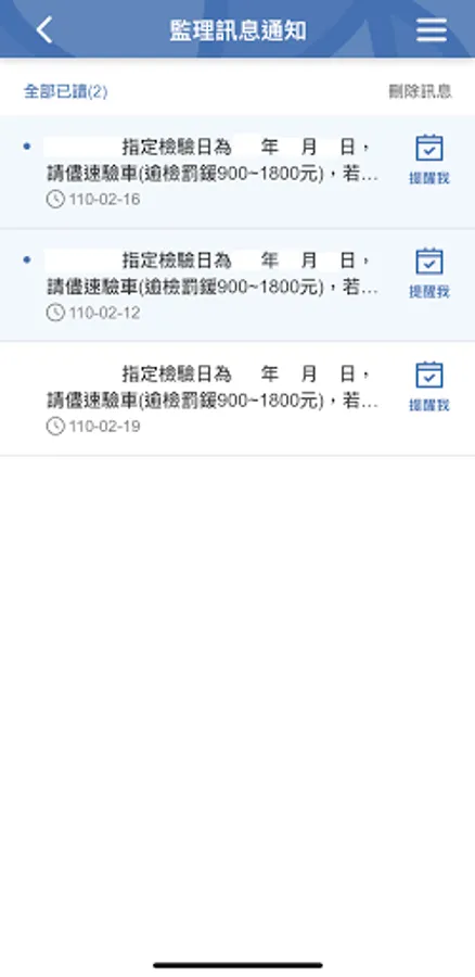 3. The last two vehicle mileage inquiries, reminders of abnormal mileage and inquiries on the next scheduled inspection date