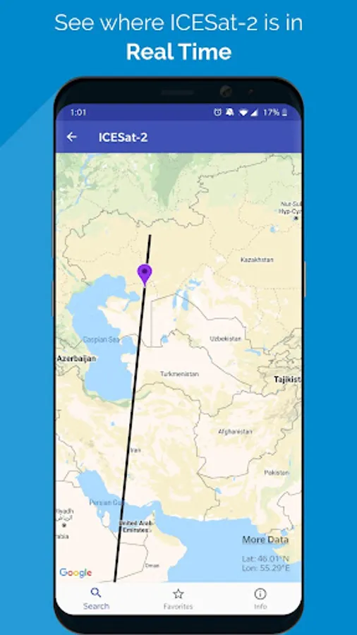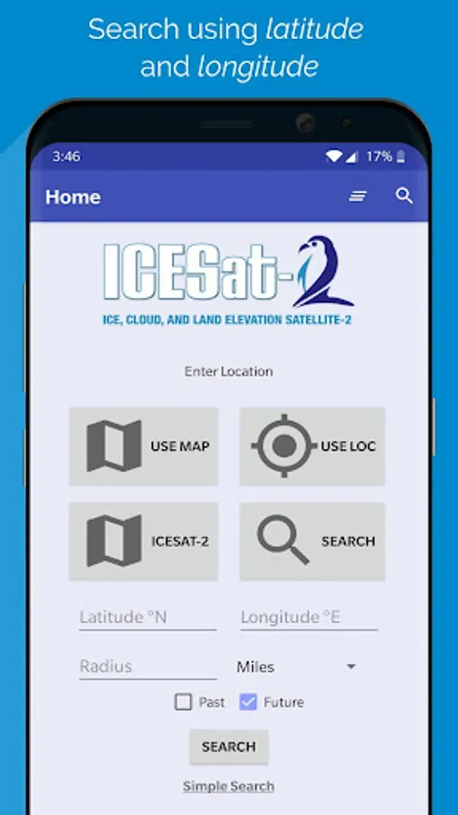 When will ICESat-2 measure a particular area? With this app, you can find out by using your location, choosing a place on a map, searching for a specific site, or entering a latitude and longitude. You have the option of viewing future results, past results, or both for all of the current data available in the app
