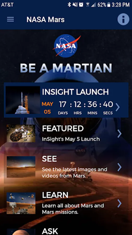 The NASA Be A Martian app lets you experience Mars as if you were there yourself! Take part in discovery on the Red Planet, view the latest images and videos, and get up-to-the-minute news.