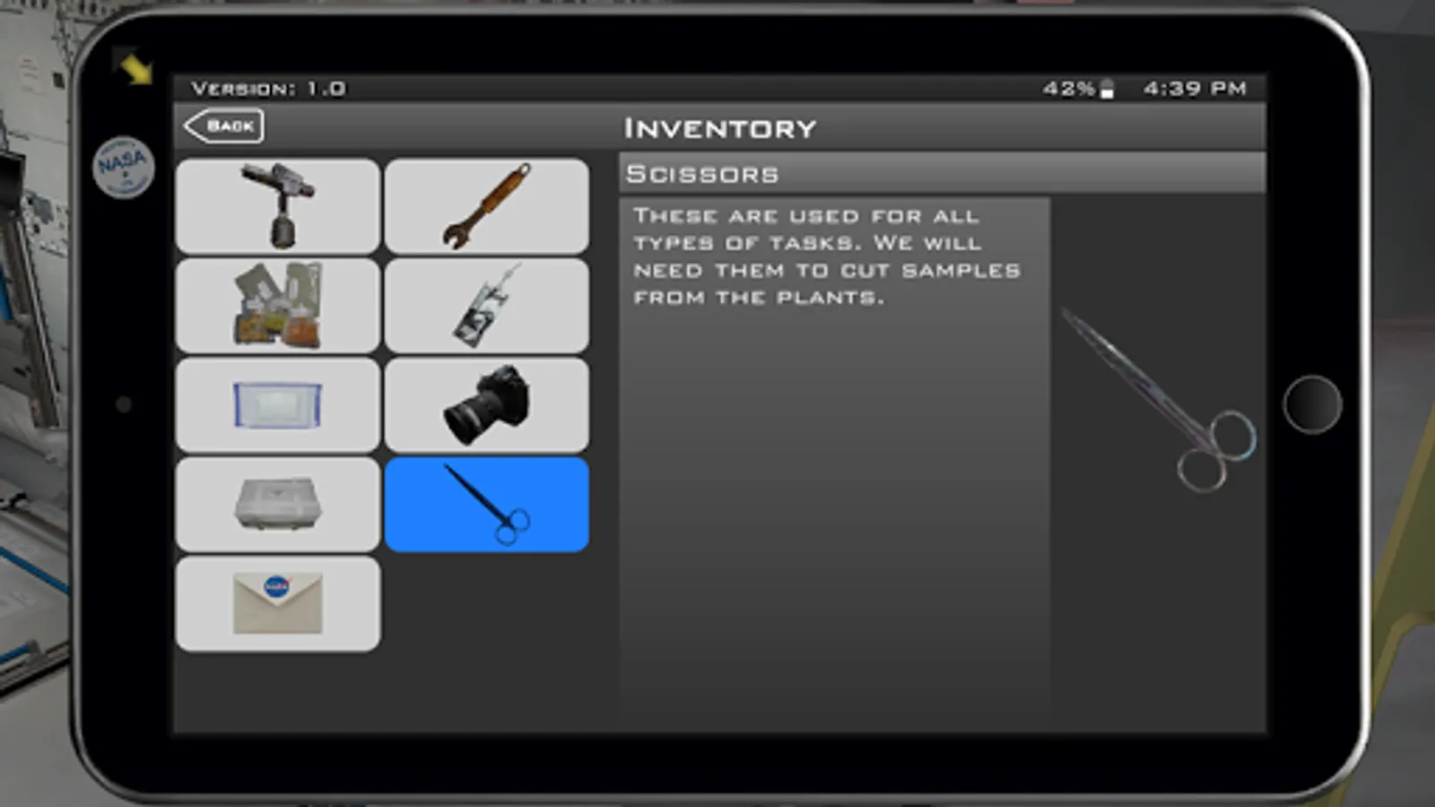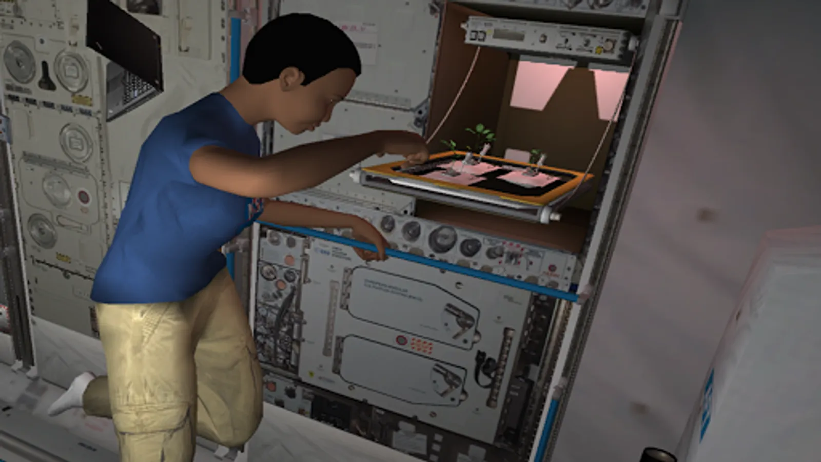 Once you’ve become comfortable moving in zero-g, find astronaut Naomi and assist her in cutting-edge research: how micro-gravity effects plant growth in space. What kind of light do they need? How do you water plants without gravity? Why is growing food important in space?