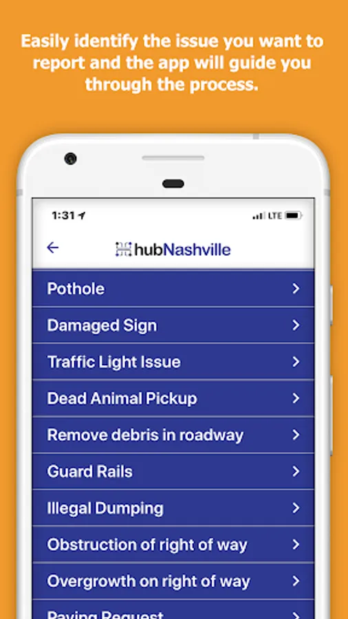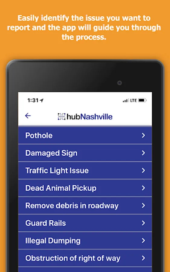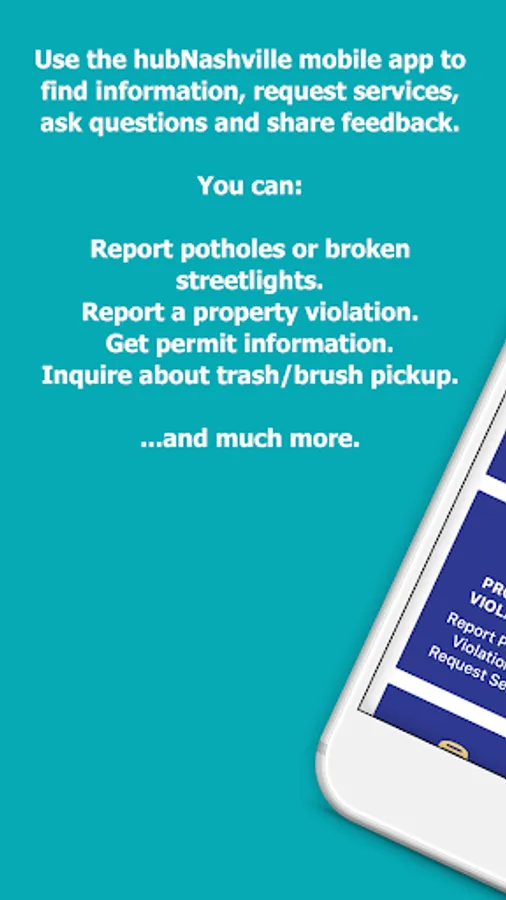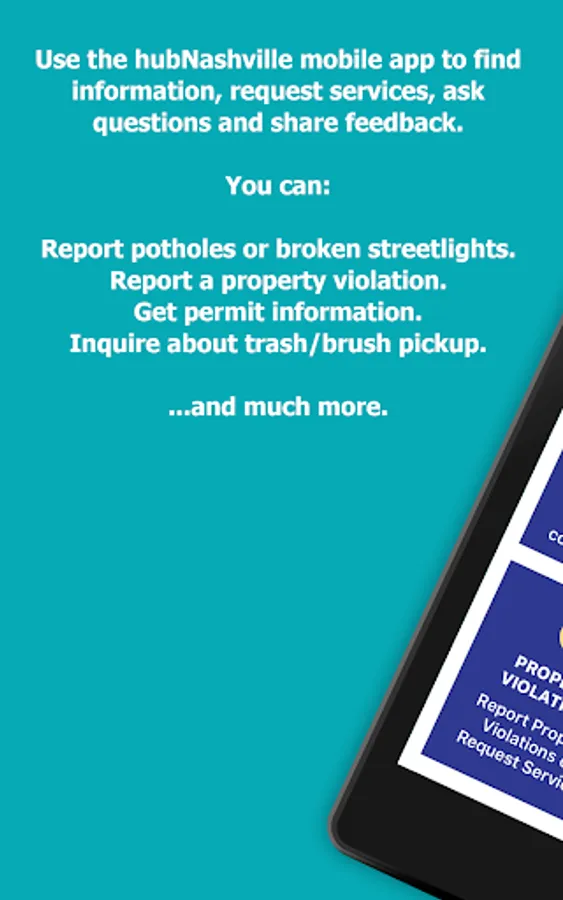 The hubNashville app connects you to the online request form where you can select from a wide variety of the most common requests. hubNashville helps you answer questions such as: