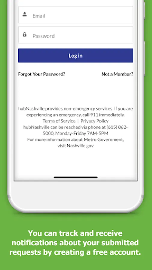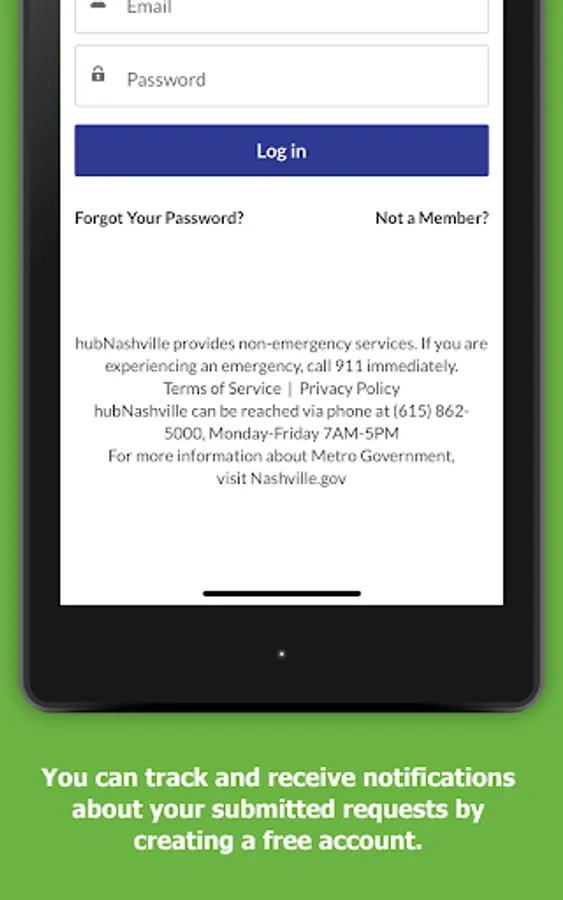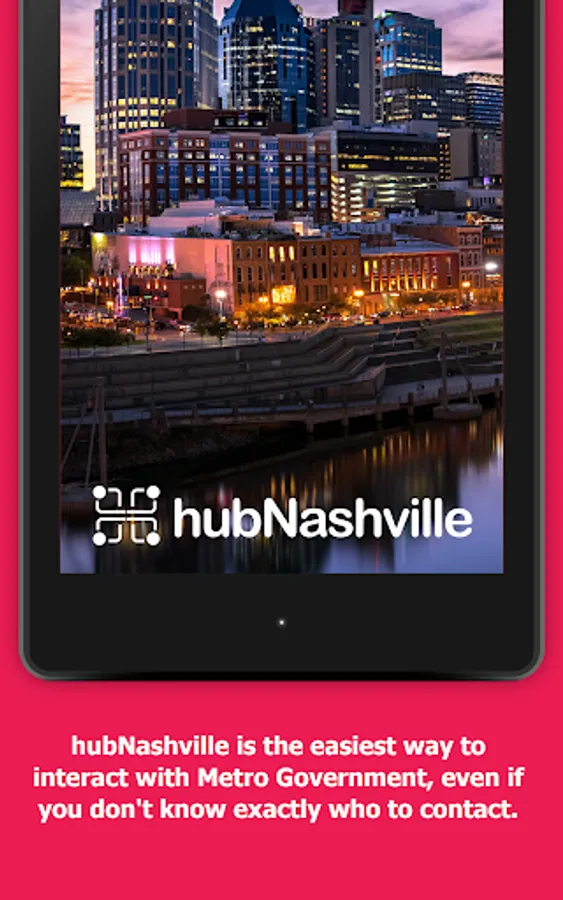 hubNashville currently handles requests made to the Mayor's Office, the Metro Council Office, Public Works, Codes, and Metro Water Services' Stormwater division. More departments and agencies are coming soon. Users who create an account with the hubNashville app or log in to an existing account created through the online portal can get updates on their existing requests.