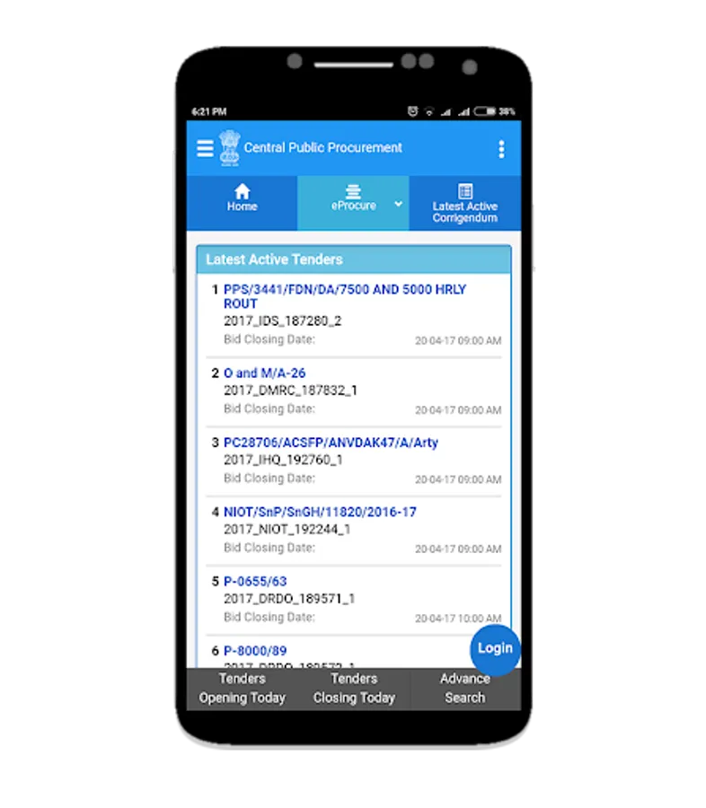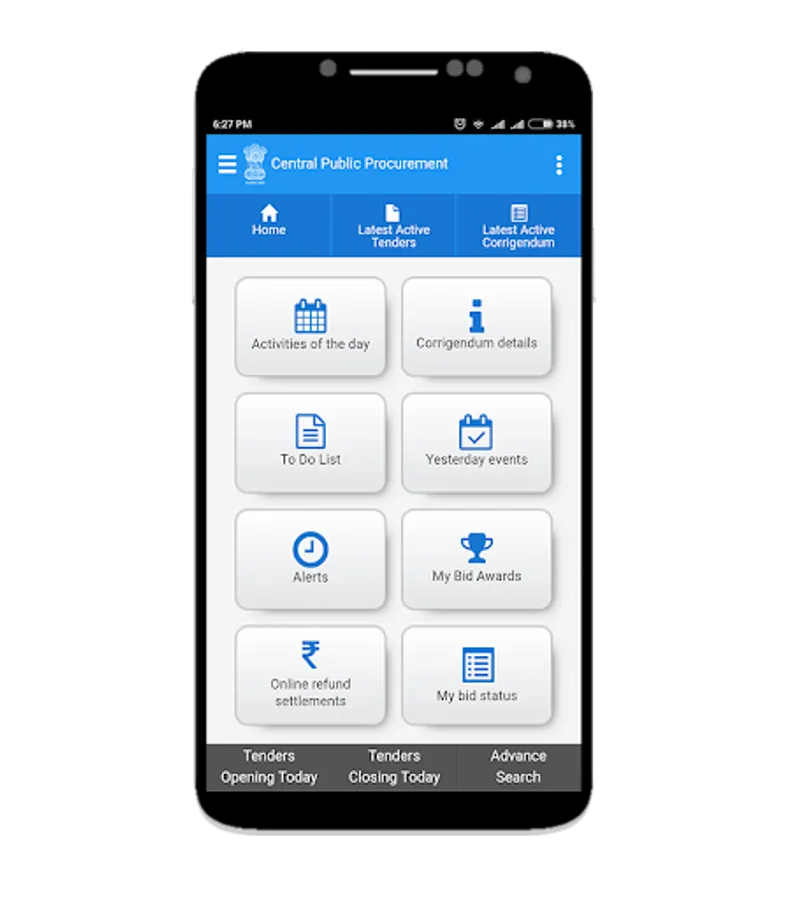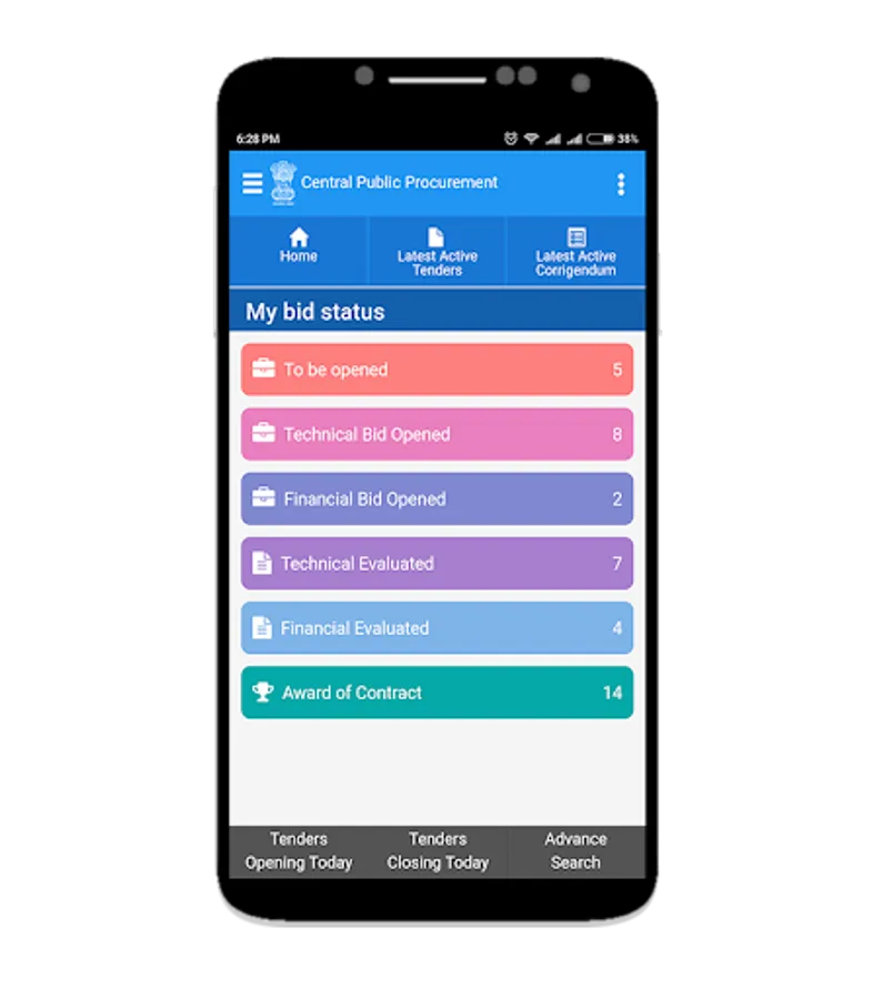 • Get details of all published tenders real time through the mobile app.