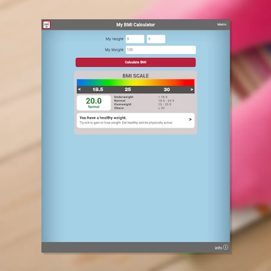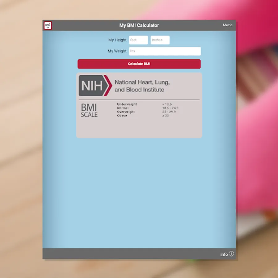The National Heart, Lung, and Blood Institute’s BMI (Body Mass Index) calculator is a useful tool to screen for weight categories that may lead to health problems. The downloadable phone application puts the fully functioning calculator right on your phone, along with links to resources on the NHLBI site.