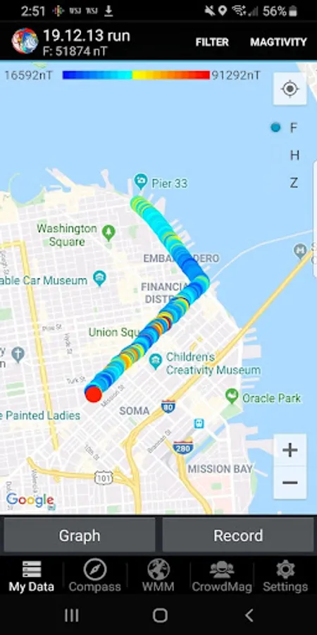 If you're going for a walk, run, or other outdoor activities, you can use CrowdMag to measure the magnetic data along your path and save it as a "magtivity." And, if you get a new phone, don't worry! You can export a backup of your CrowdMag data and save it on your computer. This way, if you have to reset your phone or switch to a new one, you can import your backup and continue using CrowdMag without losing your data or progress.