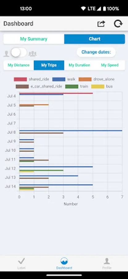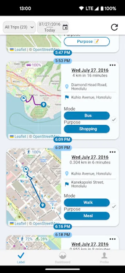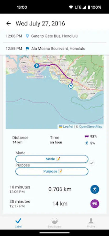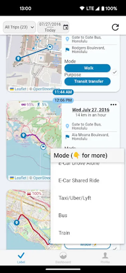 The app empowers communities to understand their travel mode choices and patterns, experiment with options to make them more sustainable, and evaluate the results. Such results can inform effective transportation policy and planning and be used to build more sustainable and accessible cities.