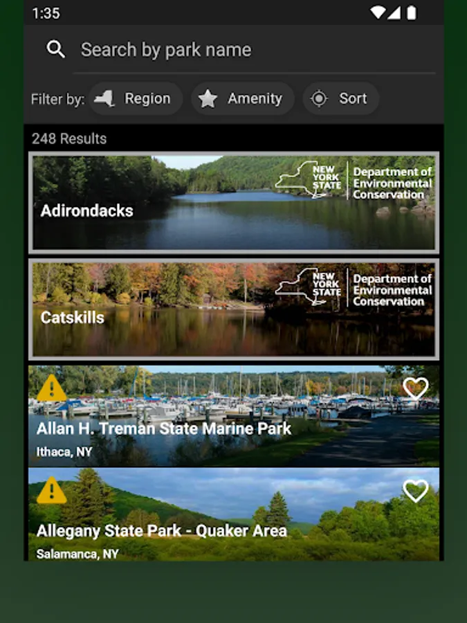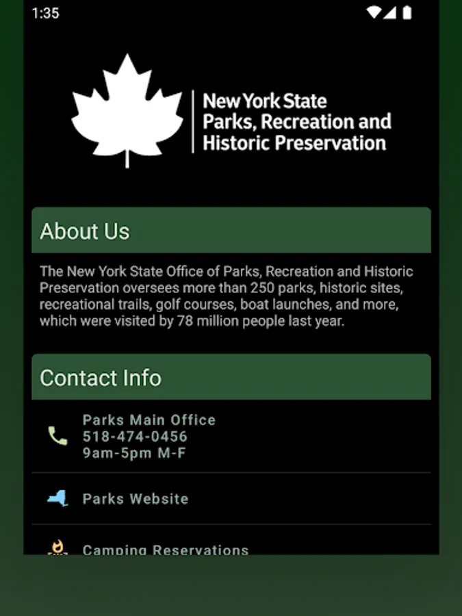 From the oceanfront shores of Long Island to the mighty Niagara Falls, more than 250 parks, historic sites, trails, golf courses, boat launches, and campgrounds are just a few taps away. With the New York State Parks Explorer App, you can plan getaways, explore favorite regions and discover new adventures and cultural gems with easy access to enhanced trail mapping, must-sees, things to know before you go, apparel and merchandise, and regularly updated information including special events and alerts. Discover your next adventure, download the NY State Explorer app today.