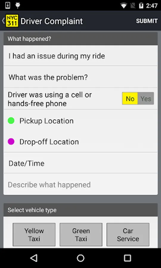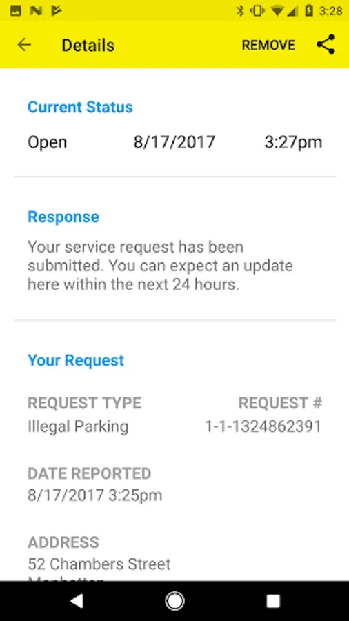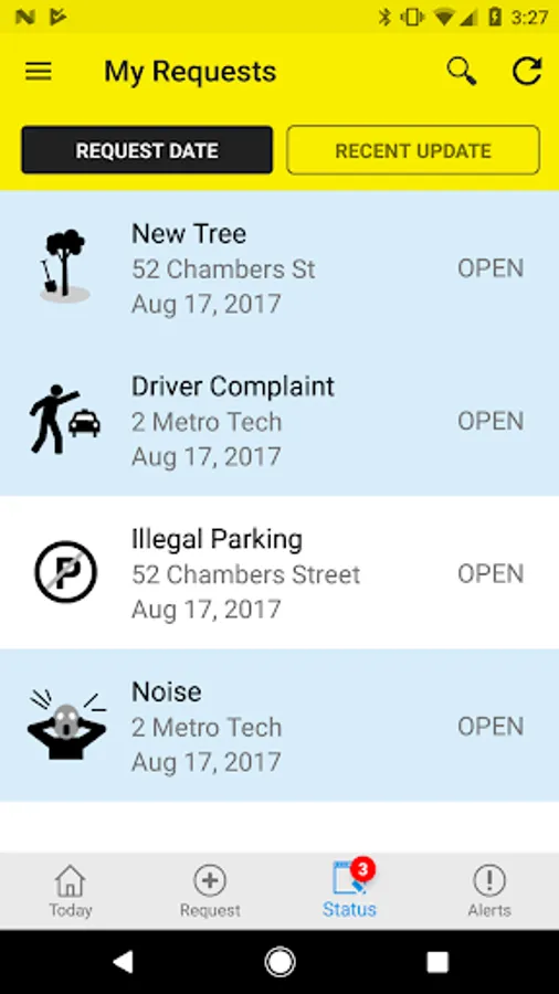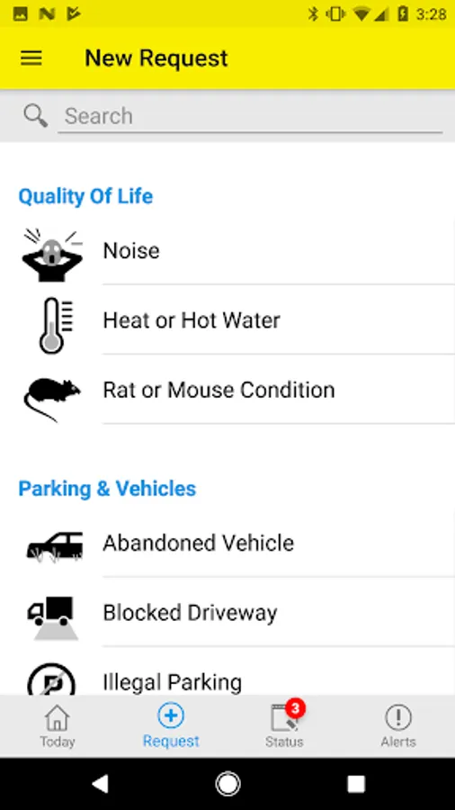 • Report problems. See an issue in your neighborhood? You can easily file Service Requests for noise, illegal parking, dirty sidewalks, and much more.