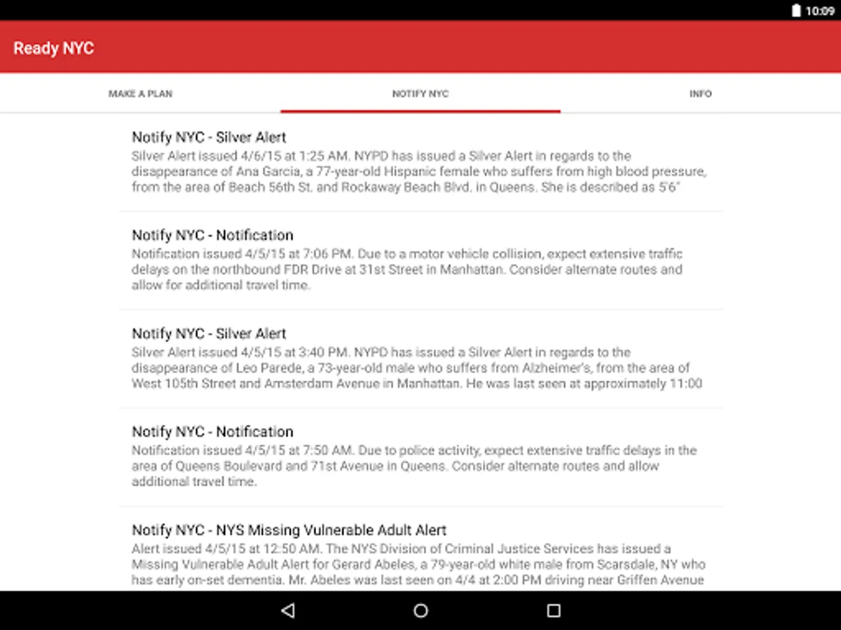 Other key features of the app include tips and information about what to do during emergencies, and an alerts feed from Notify NYC -- New York City's official source for information about emergency events and important City services.