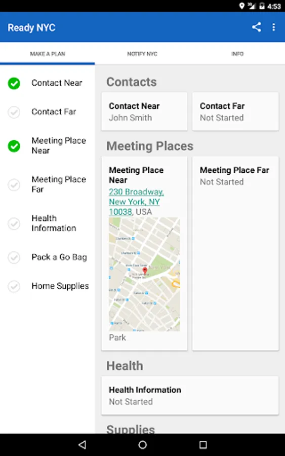Based on the Ready New York campaign, Ready NYC encourages users to make an emergency plan before disaster strikes.