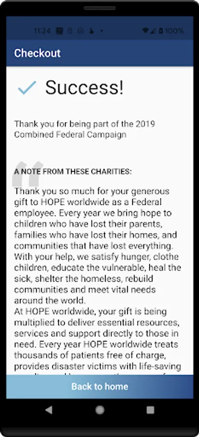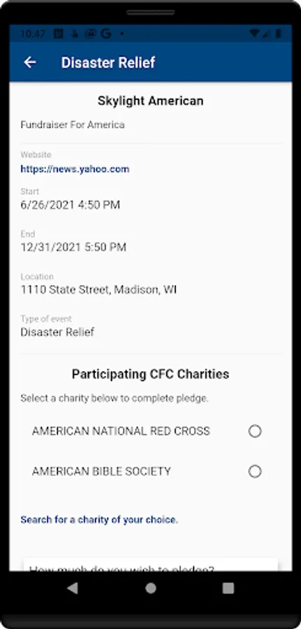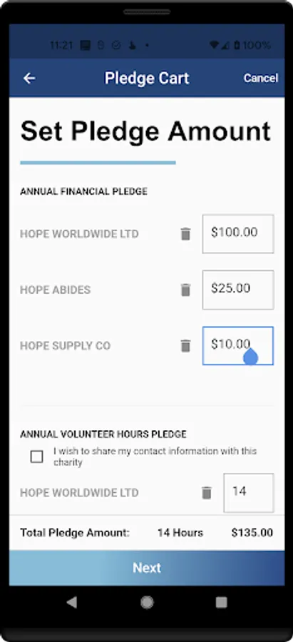 New features to the 2021 Campaign: The mobile app now allows donors to have the same giving options as the online pledge experience. Donors can search and donate to charities to make recurring or one-time pledges using payroll, bank account, or credit card information. Employee pledges of volunteer hours can also be made to charities that have volunteer opportunities (identified with hand icons). The app supports Touch ID and Face ID for easy and secure access to giving accounts.