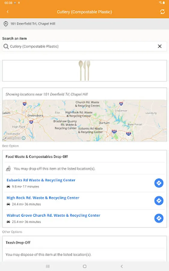 Search for items to learn how they can be recycled, composted or disposed of in Orange County, NC. View your recycling collection schedule and set up notifications using the app.
