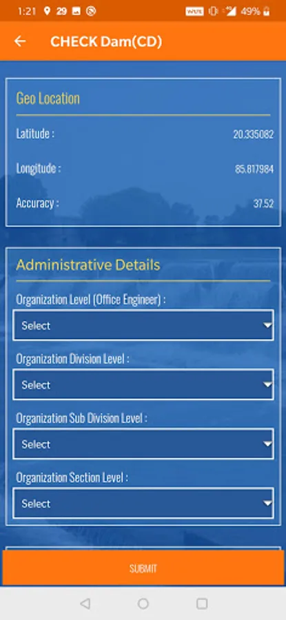 Application developed and powered by ORSAC for asset mapping of Check Dam Data for the State of Odisha.