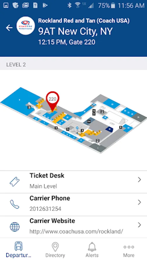 • View directories showing the location of services available at the terminal, including ticketing, shops and restaurants, restrooms, ATMs, charging stations and more.