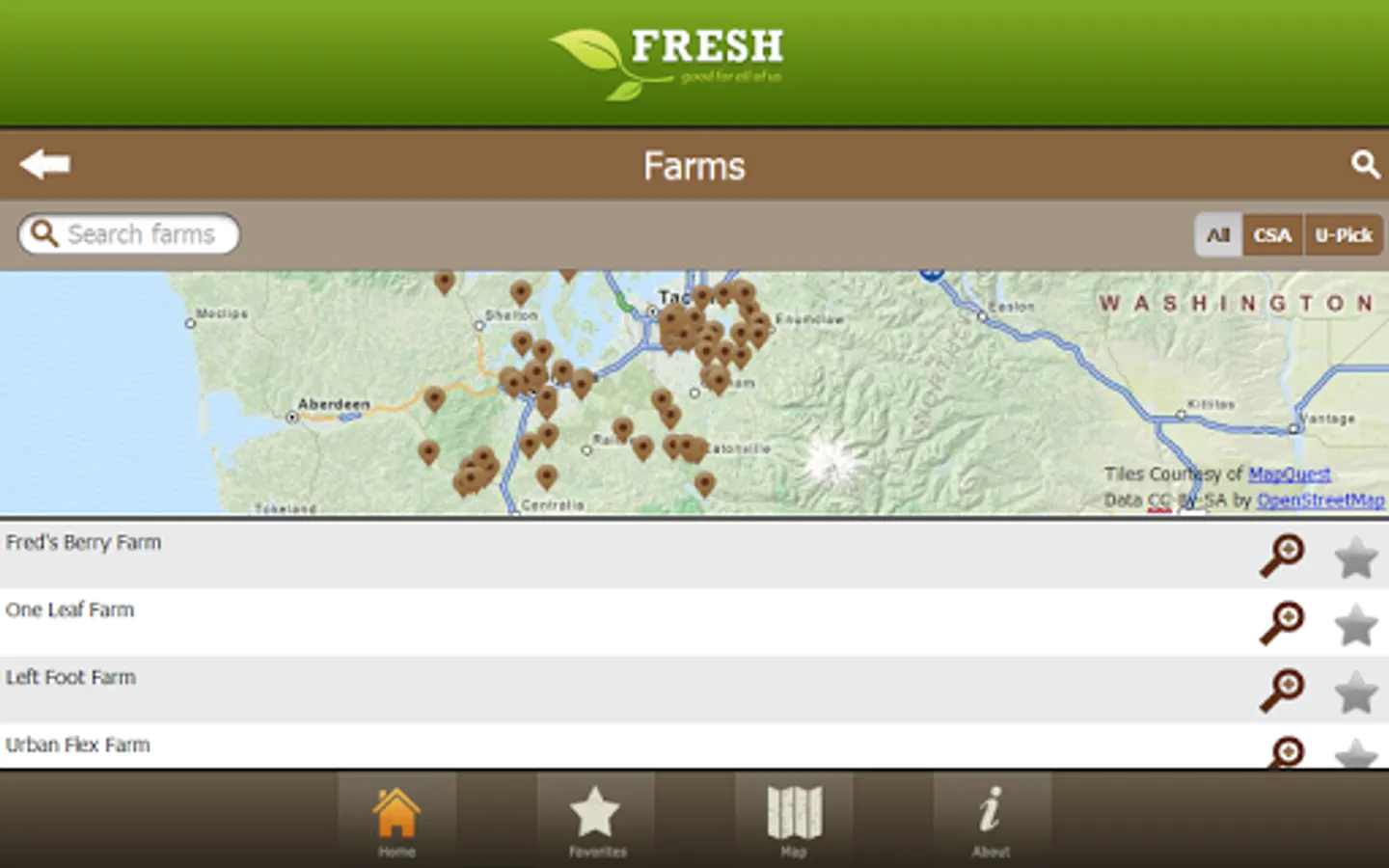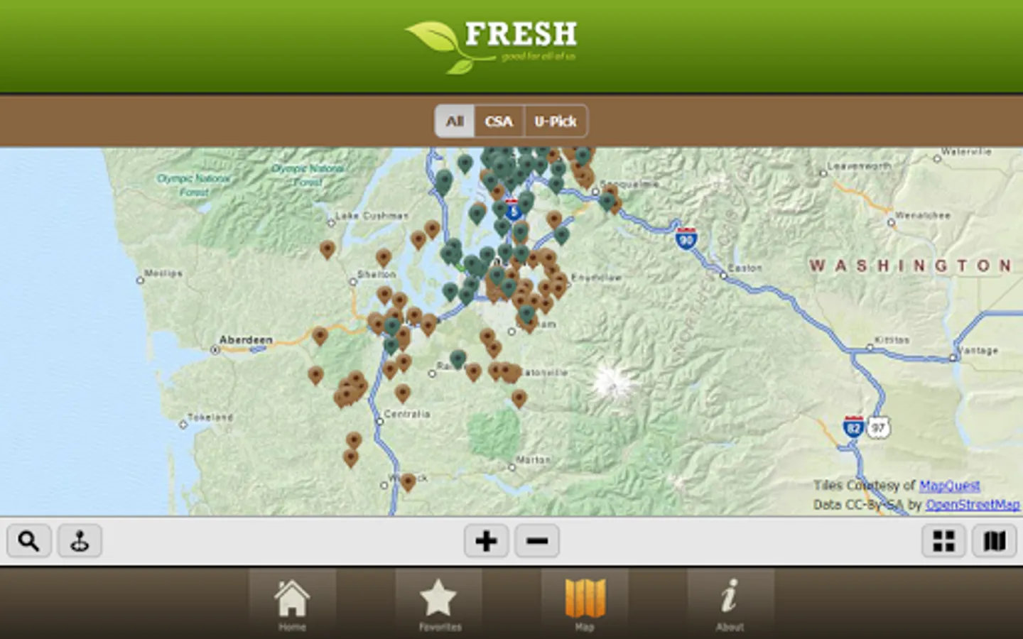 The Puget Sound Fresh app offers easy access to a growing list of great farms and farmers markets in Washington State as compiled by the Cascade Harvest Coalition. From produce to events, Puget Sound Fresh is your connection to the local food supply.