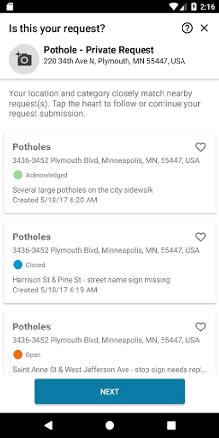 Connecting with the City of Plymouth is easier than ever. Download the myPlymouth app to submit inquiries or report non-emergency issues about a variety of topics, including street signs, snow removal, potholes, parks, trees and more. Set up an account, select a location, snap a photo and press submit – then track the status of your submission.