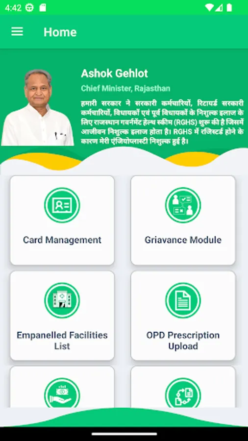 👉 Online modules for RGHS Beneficiary include Registration module, e-card download, Edit module, OPD prescription upload, RGHS Card Tracker, Grievance module and OPD Fund Enhancement for pensioners.