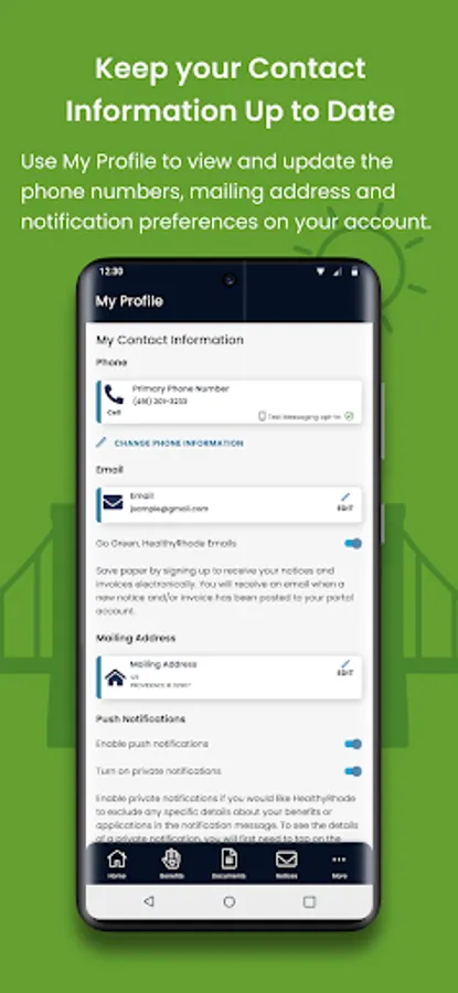 KEEP YOUR CONTACT INFORMATION UP TO DATE Use My Profile to view and update the phone numbers, email address and mailing address on your account. Personalize notifications received through email and or push notifications.