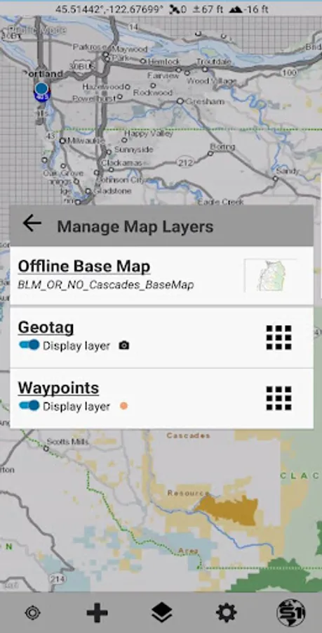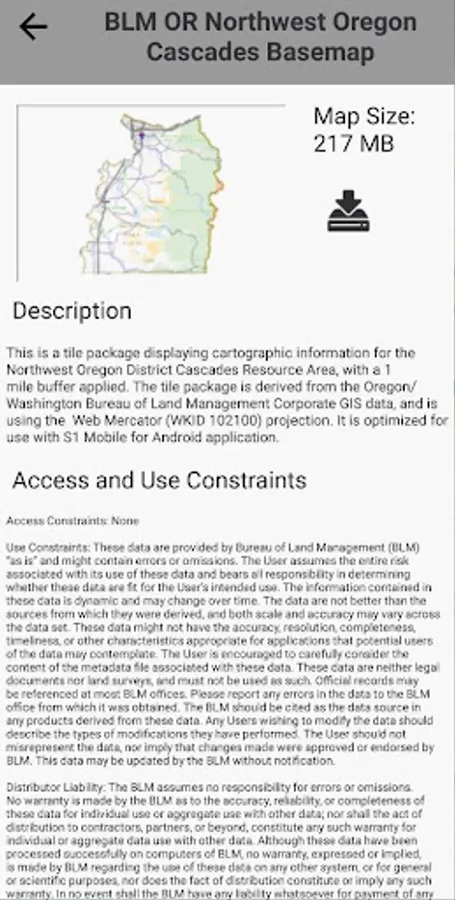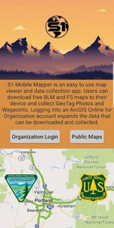 For the public S1 Mobile provides offline mapping capability that provides download capabilities for official Bureau of Land Management Maps for Oregon Washington & US Forest Service maps throughout the US for offline use. Maps that are distributed are free maps that are already publicly available and have gone through the appropriate agency public affairs process. Application includes GPS capability so that you can see where you are on public land even when not connected to any cell network (note that maps must be downloaded to device in order to see them offline). Additionally the app includes the ability to take waypoints, GeoTag photos and basic navigation as the crow flies.