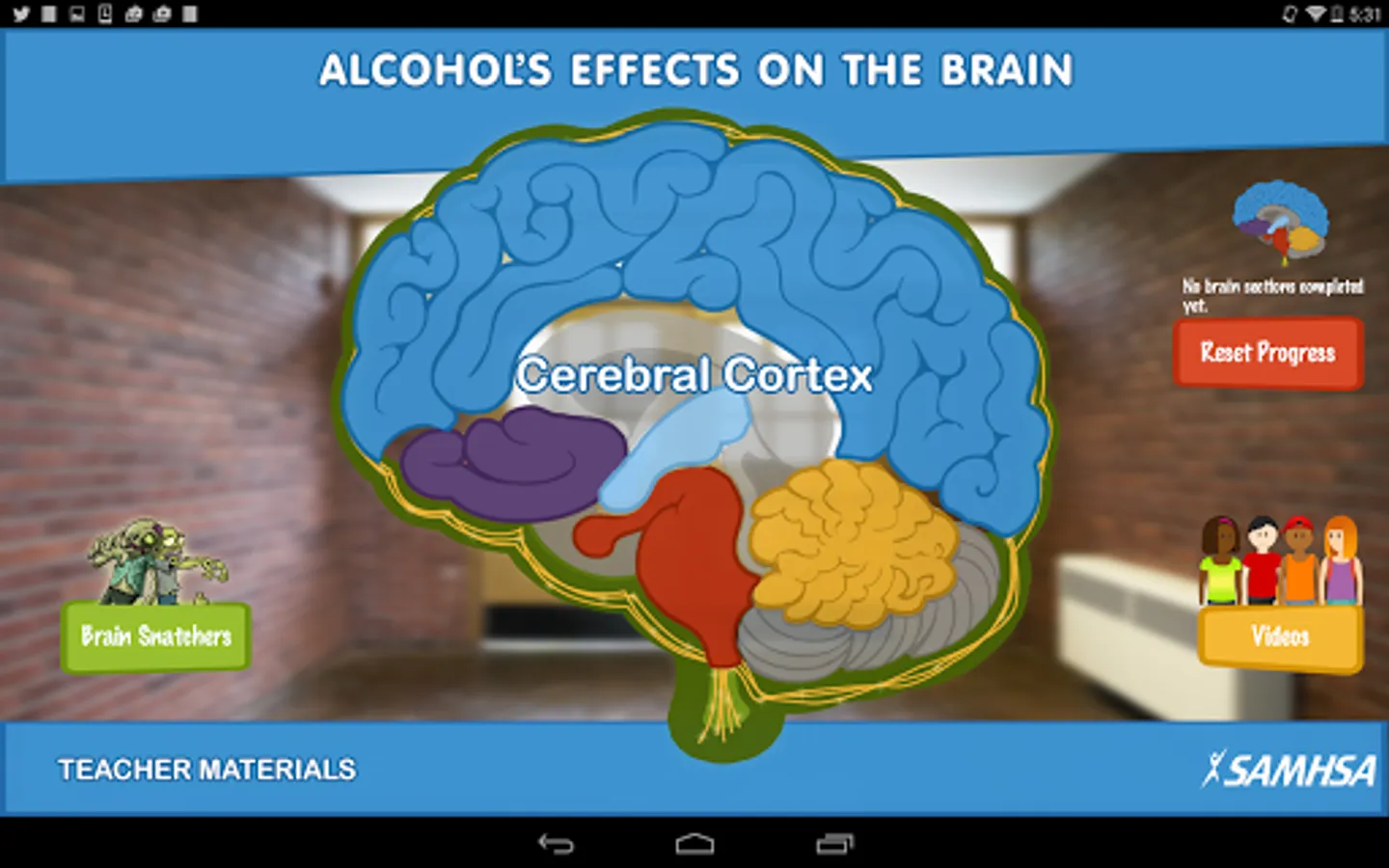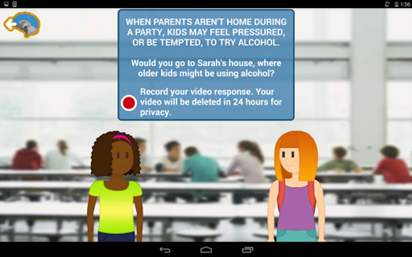 Students who complete all six units are rewarded with access to the Brain Snatchers game. Teacher materials include a discussion guide with key concepts, objectives, and questions; suggested cross-curricular use of the app's content; and a list of resources related to underage alcohol use. Content is presented in both print and audio to make this app accessible to all students.