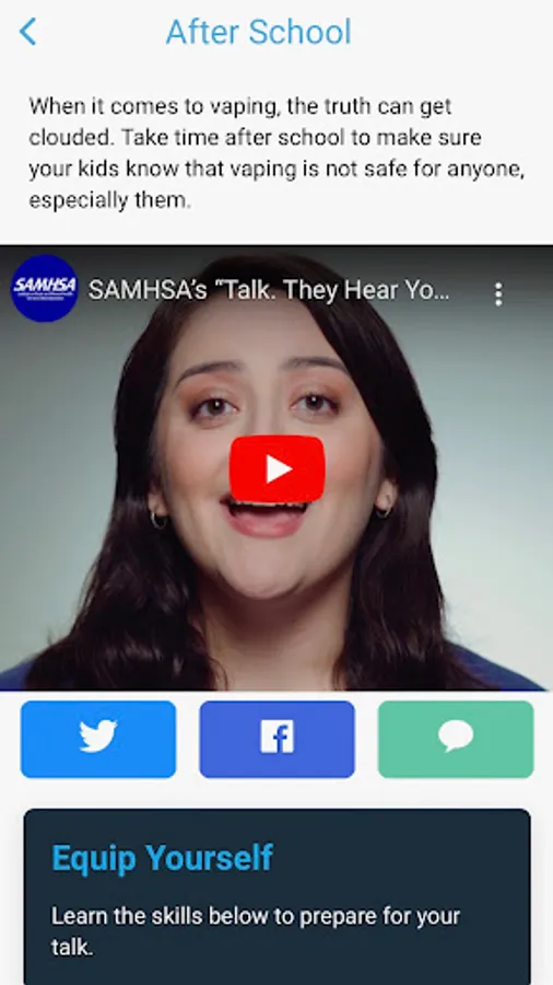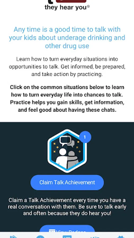 Parents and caregivers have a significant influence on whether their kids drink alcohol or use other drugs – the sooner you talk to your kids about underage drinking and other drug use, the greater chance you have of influencing their decisions. SAMHSA’s “Talk. They Hear You” mobile app makes it easier than ever for parents and caregivers to prepare for these important conversations and continue them as their kids get older. While the app is geared toward parents and caregivers of children under the age of 21, it is also designed to help prepare communities to implement and promote the campaign locally and educators to engage student assistance professionals, school leaders, and families in supporting the needs of students who may be struggling with substance use, mental health, or school-related issues.