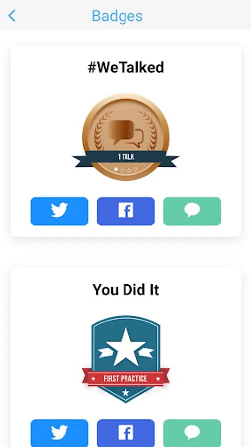 - Badge rewards given each time you practice or have an actual conversation with your child! Can you get the platinum badge?