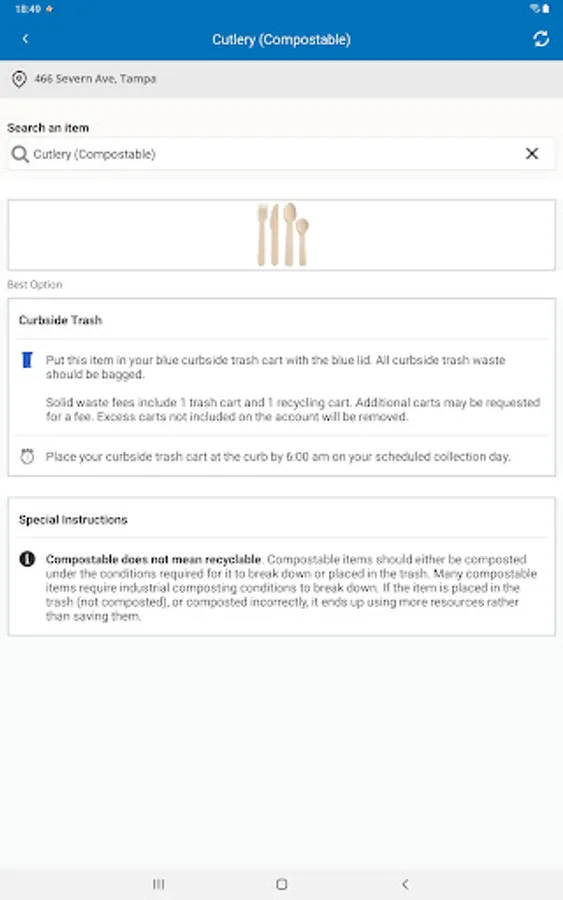 reminders for City of Tampa. Search any item to ensure it is disposed of properly. View your trash, recycling, yard