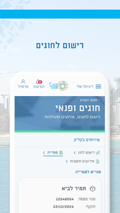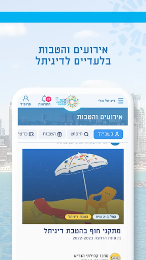 My digital - everything in one place. The gateway to all the information, benefits, events and services of the Municipality of Tel Aviv-Jaffa, customized for you personally.