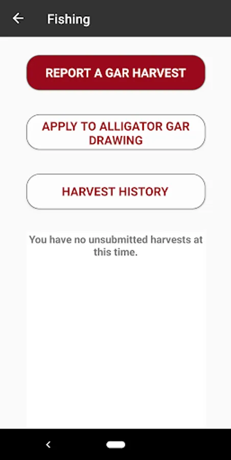 - Report harvest of native big and small game animals, alligator gar, and oversized red drum,
