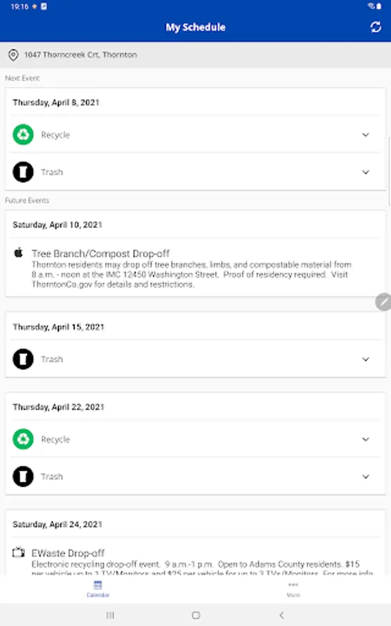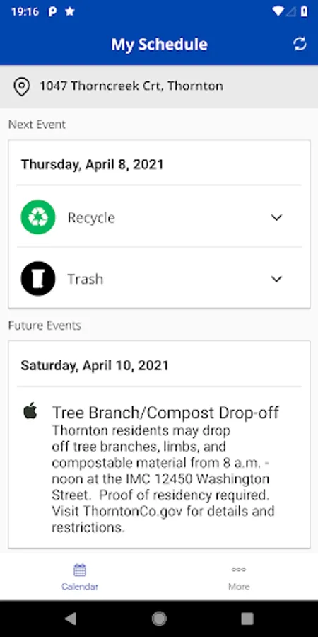 Garbage and recycling schedules and reminders for City of Thornton. View your garbage and recycling schedule and receive collection notifications all from within this app.
