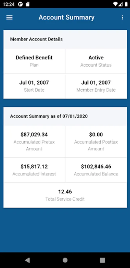 - Summary, which includes the current account balance and service credit as of the latest reporting by your employer.