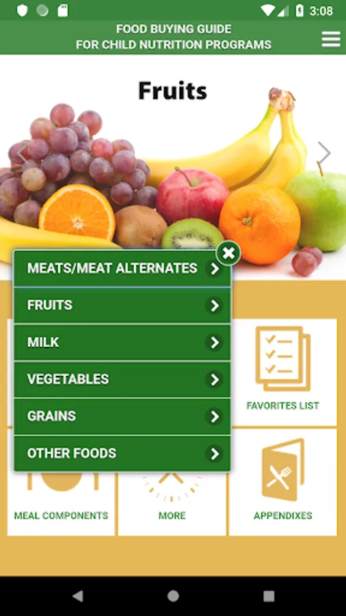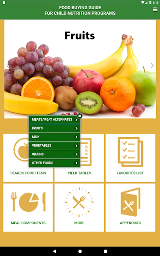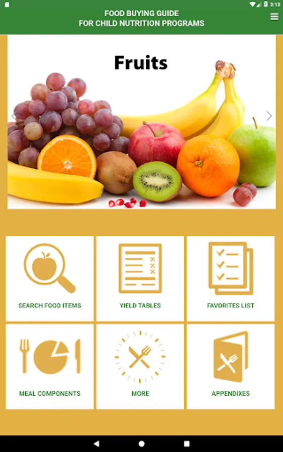 The Food Buying Guide for Child Nutrition Programs (FBG) Mobile App assists Child Nutrition Program (CNP) operators, food manufacturers, and other stakeholders with: