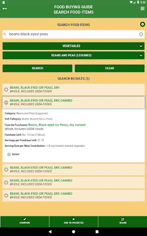 - Easy search and navigation of food yields for over 2,100 foods typically served in CNP settings.