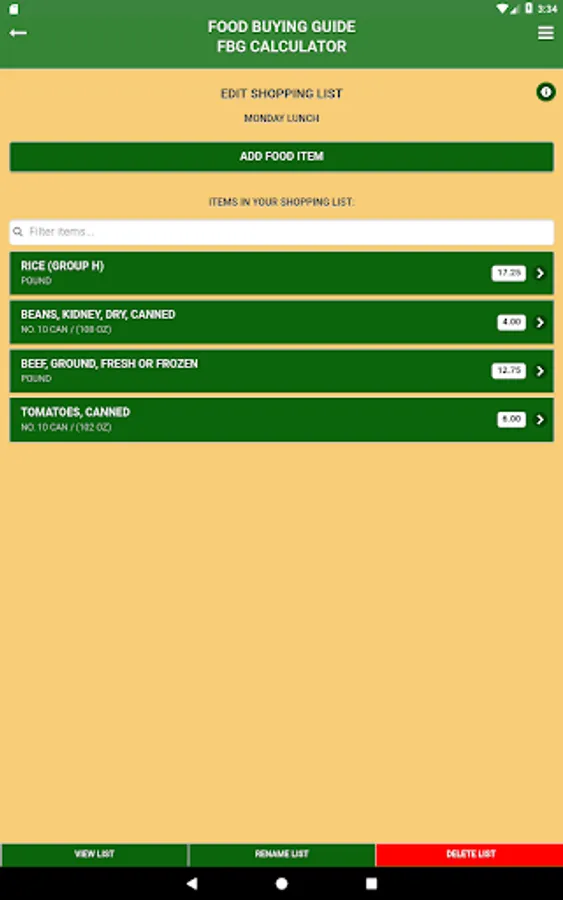 - Create shopping list to assist in ordering and purchasing food.