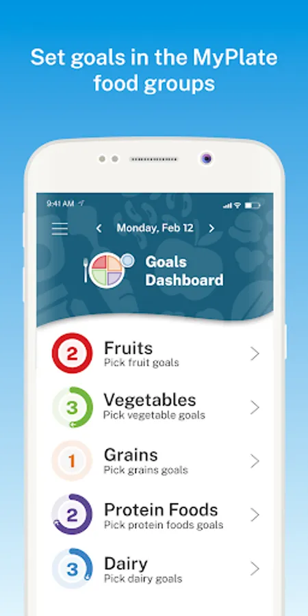 - See daily progress in each food group as you meet your goals
