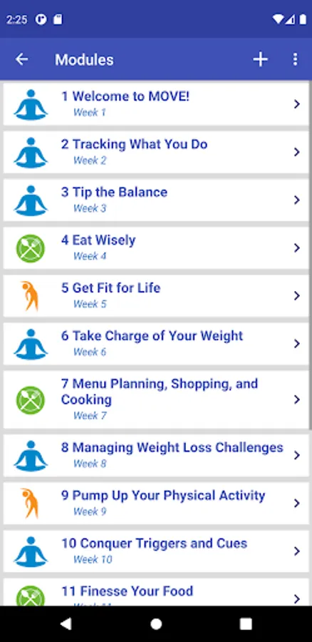 •Self-Management Modules – Educate users on a variety of weight-management success strategies using videos, worksheets, games, and other tools. Modules are made available weekly based on your progression through the 16-week program.