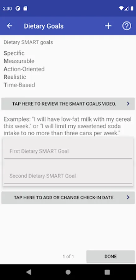 •Tracker – Assists users to track weight daily, set weight loss and SMART goals, and see progress reports and summaries