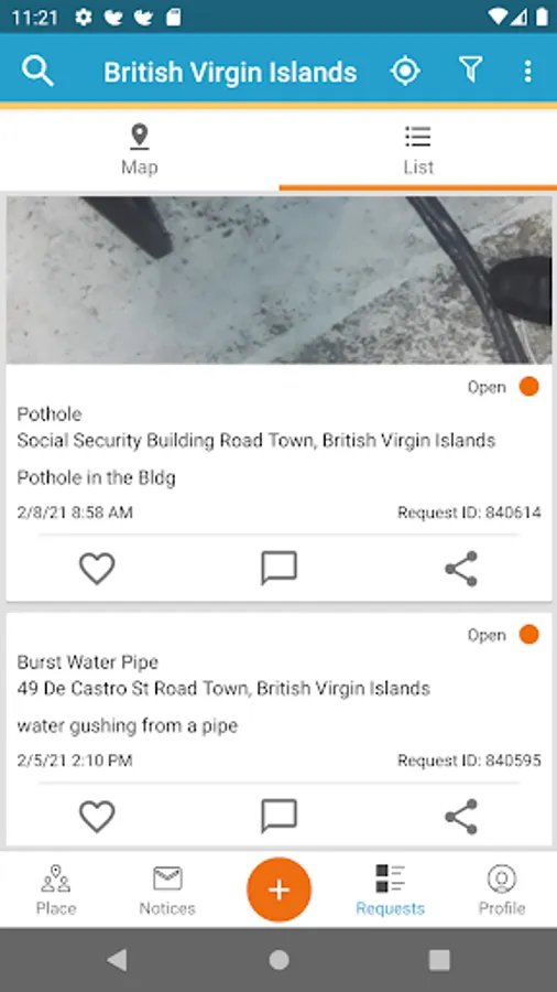 For those potholes, damaged pipes, and other problems that need attention, the BVIGovReportIt app makes reporting problems easier than ever. This app uses GPS to recognize your location and allows you to report visible Public Service problems that impede the livelihood of the Citizens. The app further allows you to upload pictures or videos to accompany your request and report problems such as street maintenance, street light requests, damaged fences, damaged electricity poles, and others. Citizens can track the status of requests they or other members of the community have submitted and can also call the Customer Service Care Centre (284-468-3701) for information on the Public Service, book appointments, and to report a problem in the BVI.