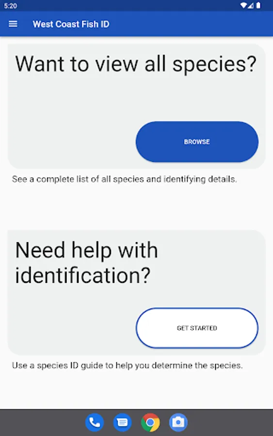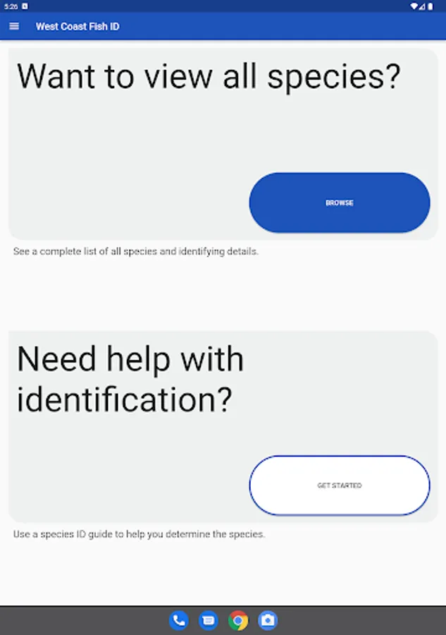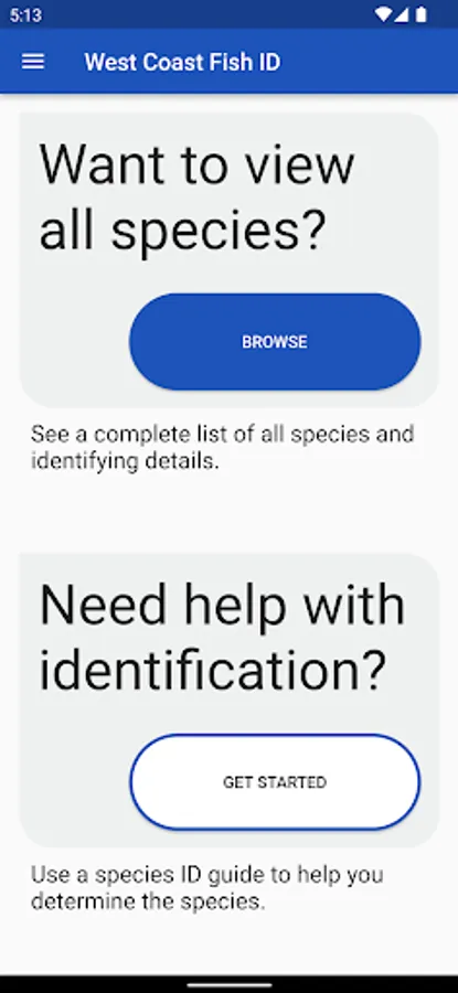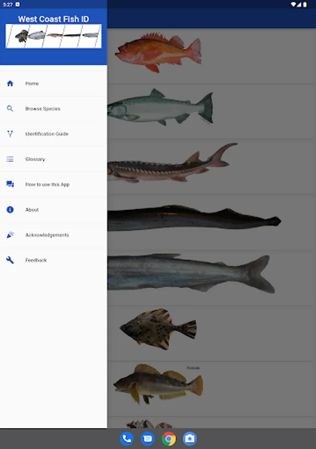 The West Coast Fish ID application is a digital encyclopedia of common species that can be found on the North American West Coast. The application facilitates rapid identification of common fish species that are targeted in fisheries along the North American West Coast, as well as provide tips for differentiating between similar species.
