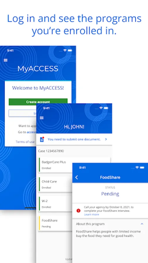 The MyACCESS mobile app provides a simple and convenient way for you to connect to the programs you've applied for or are enrolled in, including Wisconsin Medicaid, BadgerCare Plus, FoodShare, Wisconsin Shares Child Care Subsidy, and Wisconsin Works.