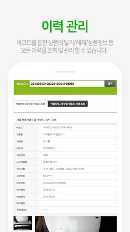 - Implementation of eco-friendly (used) parts history system for purchased automobiles