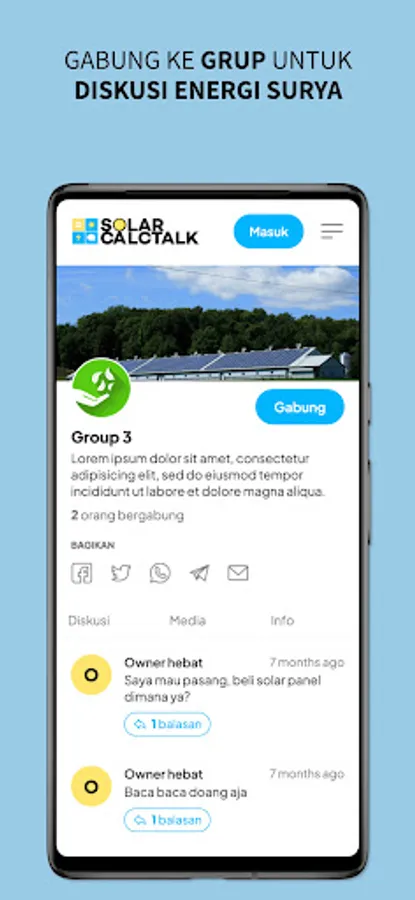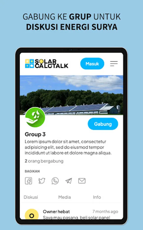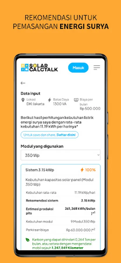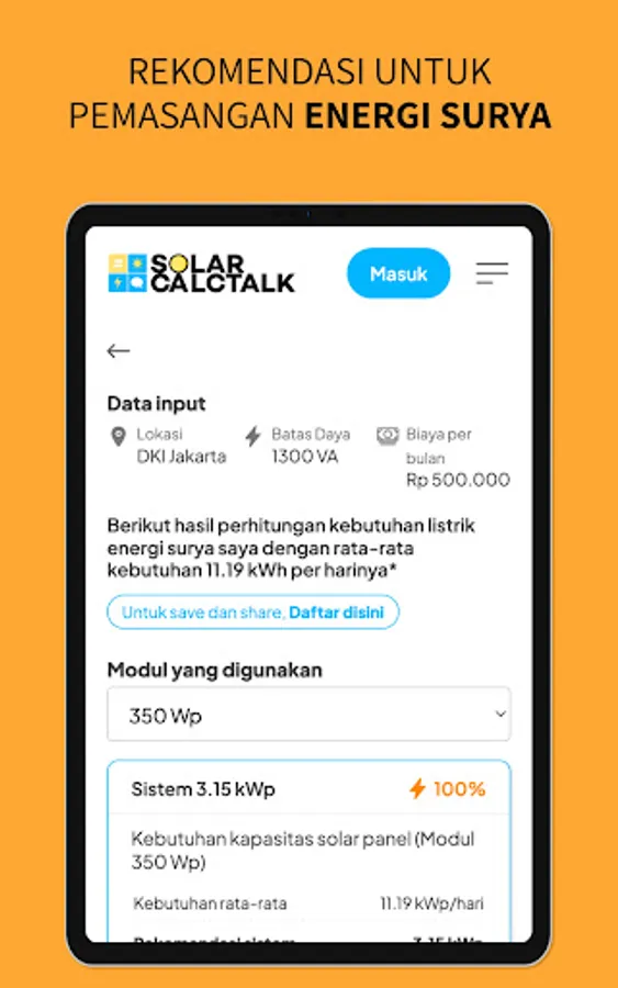 Portal for you to do a simulation of calculating your electricity needs from solar panels, one of the most popular forms of renewable energy. Apart from that, you can also discuss and share experiences in the group that is here.