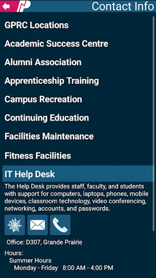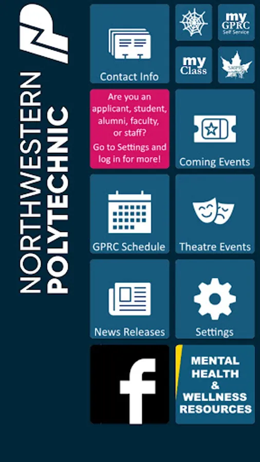 Northwestern Polytechnic (formerly Grande Prairie Regional College) has campus in Grande Prairie and Fairview, Alberta, Canada. This app provides access to information about NWP including contact information, news releases, upcoming events and performances, and our academic schedule. For NWP students and alumni, the app also shows application status, course marks and schedules.