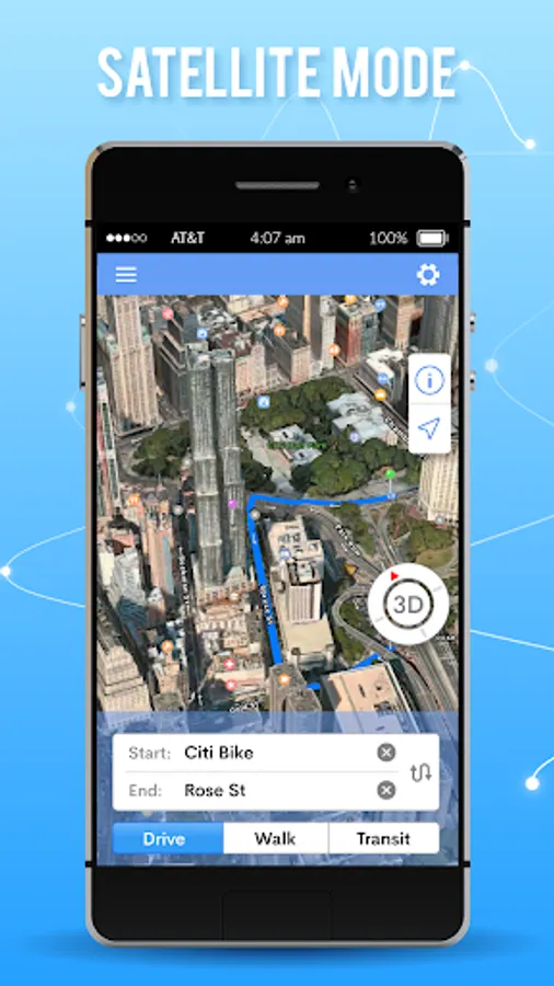 Get real-time GPS maps from all the countries in the world and use the app’s accurate real-time traffic information to stay updated. Navigate easily from any place with just a tap on your phone’s screen. Pedestrians can make use of the walking GPS directions app as well, getting walking directions to any tourist attraction.