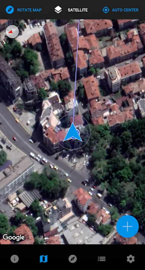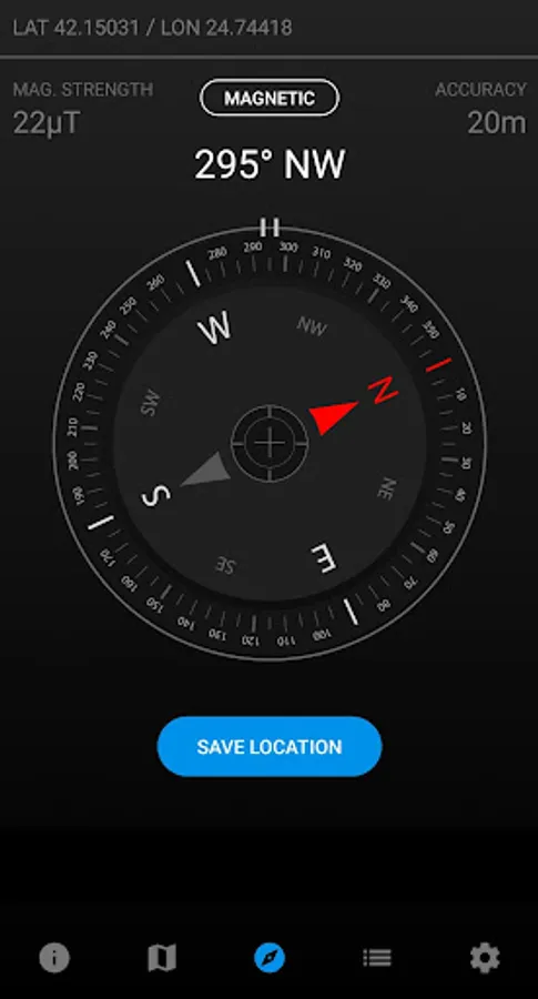 Disclaimer: If your device don't have compass (magnetometer sensor) the arrow will rotate only if you travel! Please point the top of the device to the direction of your movement.